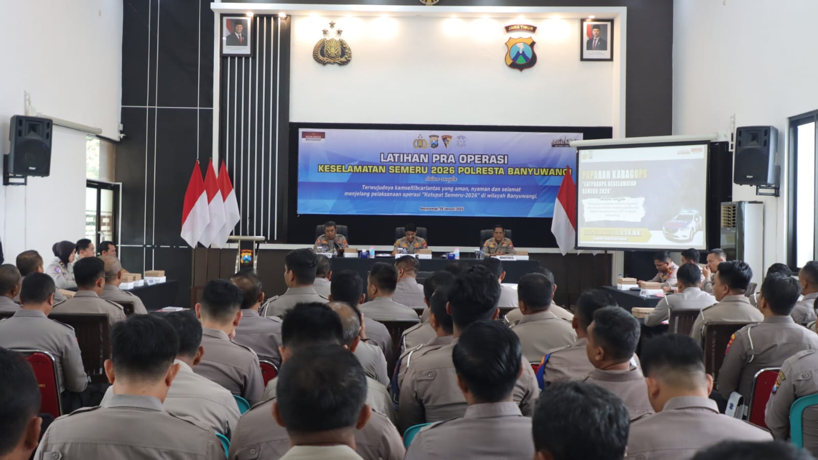 Banyuwangi, Metrozone.net– Dalam rangka memantapkan kesiapan personel menjelang pelaksanaan Operasi Keselamatan Semeru 2026, Polresta Banyuwangi menggelar Latihan Pra Operasi (Latpraops) yang dipimpin langsung oleh Kapolresta Banyuwangi Kombes Pol. Dr. Rofiq Ripto Himawan, S.I.K., S.H., M.H., Rabu (28/01/2026), bertempat di Rupatama Mapolresta Banyuwangi.