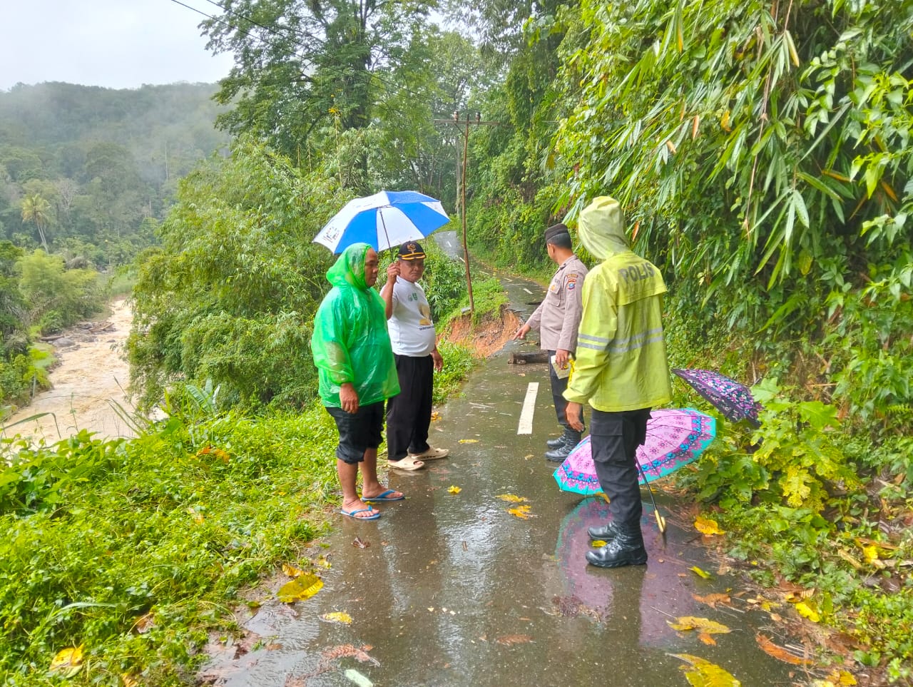 Kamis 27 November 2025 Pukul 09-00 WIB Personil Polsek Kotanopan melaksanakan pengecekan terhadap amblasnya jalan penghubung Desa Pastap Jae–Pastap Julu, Kecamatan Tambangan, yang terjadi pada Rabu, 26 November 2025 pukul 23.00 WIB akibat erosi tebing sungai setelah luapan Sungai Aek Mais karena hujan yang berkepanjangan.