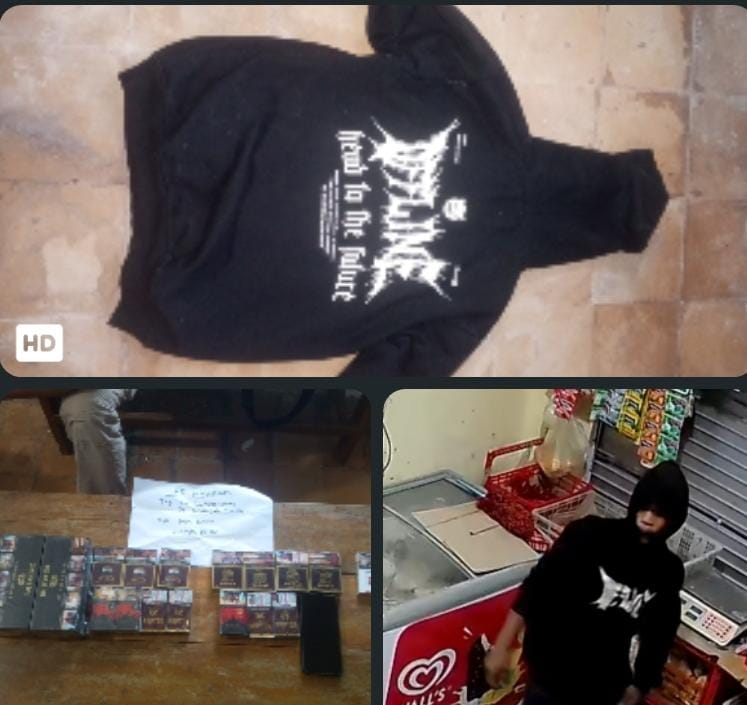Sejumlah slop dan bungkus rokok berbagai merek di etalase juga hilang. Korban kemudian memeriksa rekaman CCTV, dan terlihat seorang pria mengenakan hoodie hitam bertuliskan “OFFLINE” sedang beraksi di dalam toko.
