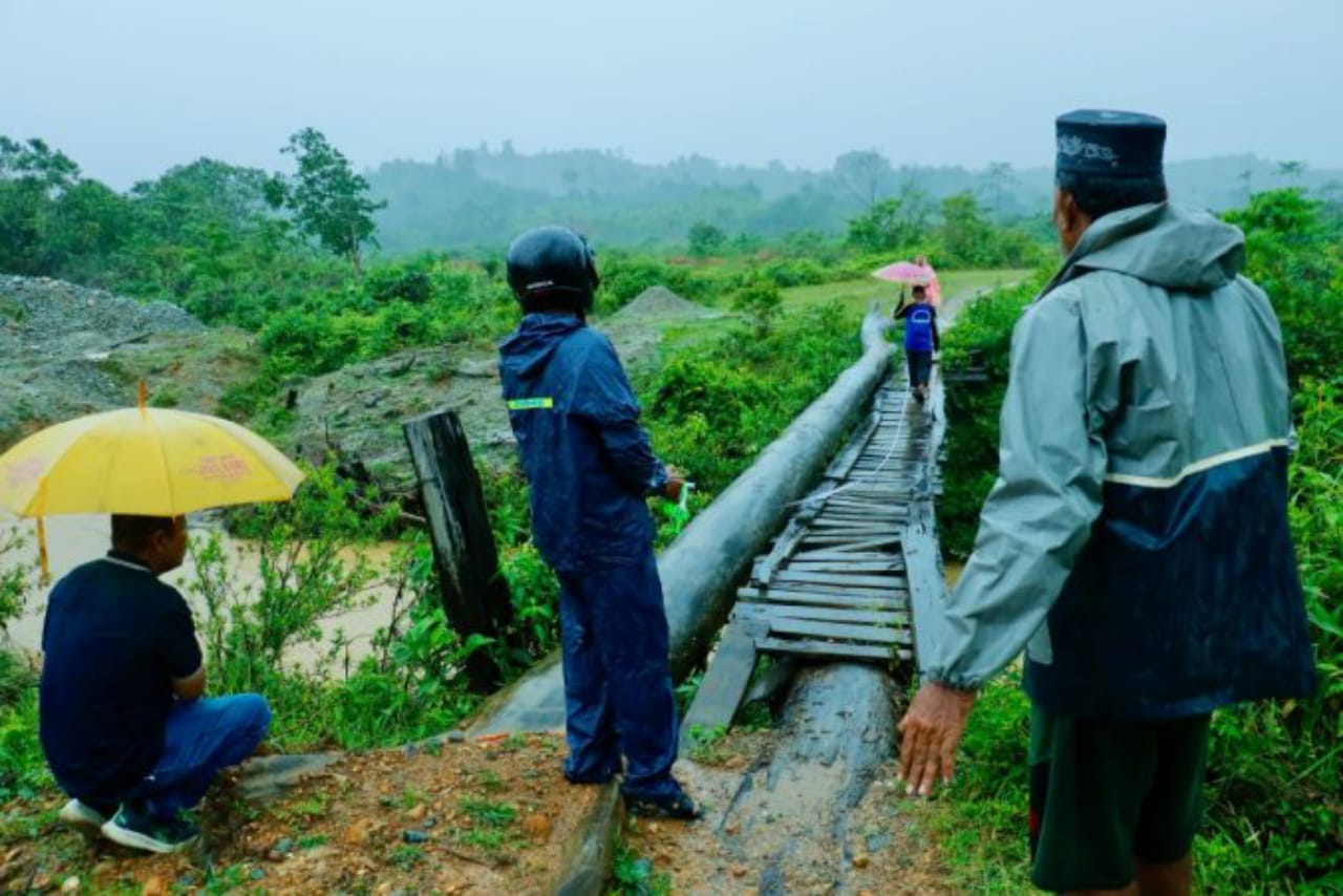 Sebelumnya ada akun media sosial warga merekam kondisi jembatan darurat dari kayu gelondongan dilintasi sejumlah anak-anak yang mengenakan seragam sekolah.