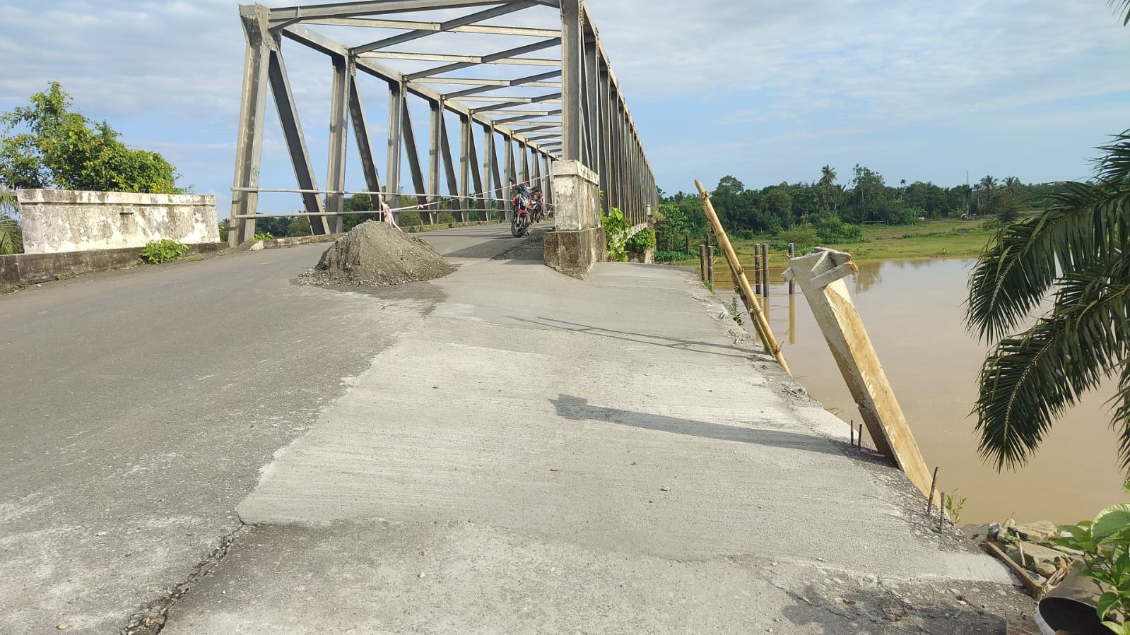 Kondisi jembatan tersebut sebelumnya dilaporkan mengalami kerusakan signifikan pada bagian abutmen akibat longsoran baru. Jika dibiarkan, arus sungai yang meningkat sewaktu-waktu dikhawatirkan akan menggerus fondasi jembatan.