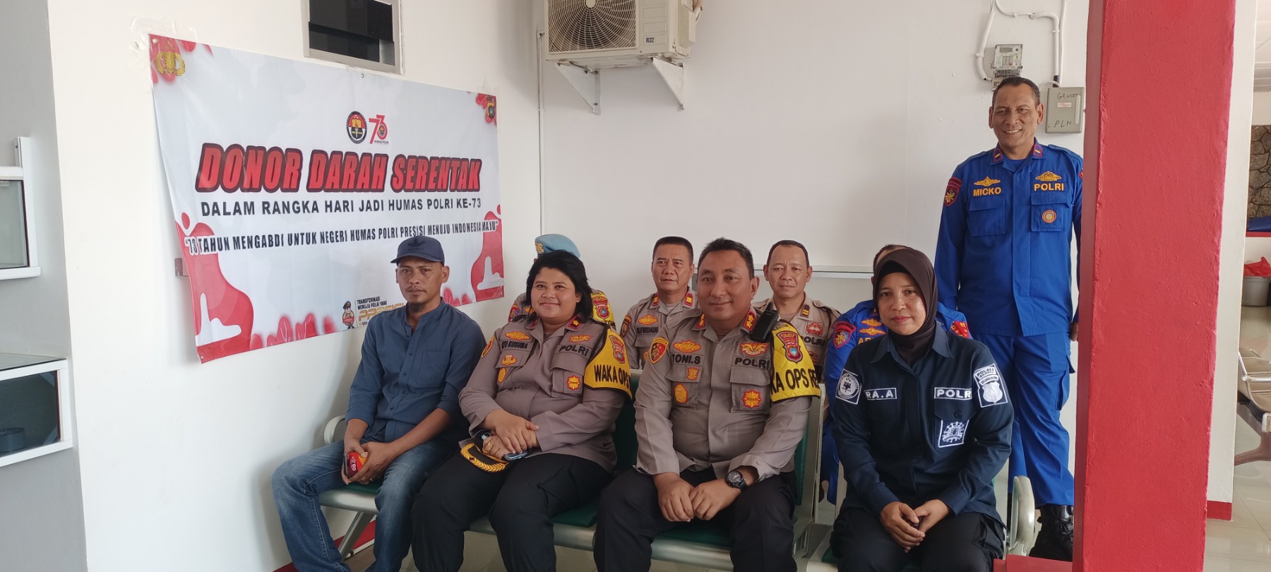 Acara yang dimulai sejak pukul 08.00 WIB ini dihadiri langsung oleh Kapolres Bangka, AKBP Toni Sarjaka, yang turut didampingi Wakapolres Kompol Ayu Kusuma Ningrum dan para pejabat utama Polres Bangka. Tak hanya melibatkan jajaran kepolisian, kegiatan ini juga diikuti oleh sejumlah rekan media serta masyarakat sekitar yang antusias untuk menyumbangkan darahnya.