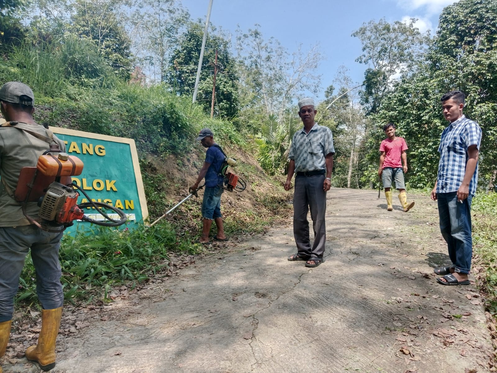Gotong royong tersebut melibatkan perangkat desa, tokoh masyarakat, pemuda, serta warga setempat. Mereka bahu-membahu membersihkan semak belukar, rumput liar, serta material tanah dan sampah yang menutupi badan jalan.
