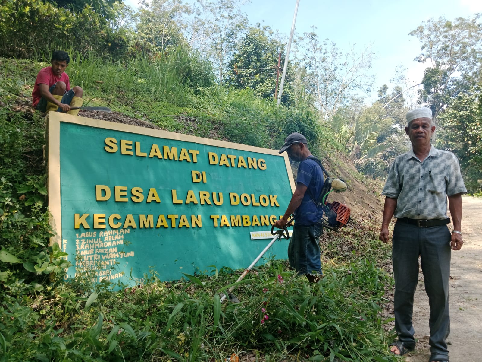 Sahlan Rangkuti, Kepala Desa Laru Dolok Kecamatan Tambangan Kabupaten Mandailing Natal Sumut Bersama Masyarakat Gotong Royong Bersihkan Jalan Menuju Desa Laru Dolok Kecamatan Tambangan Kabupaten Mandailing Natal Sumut