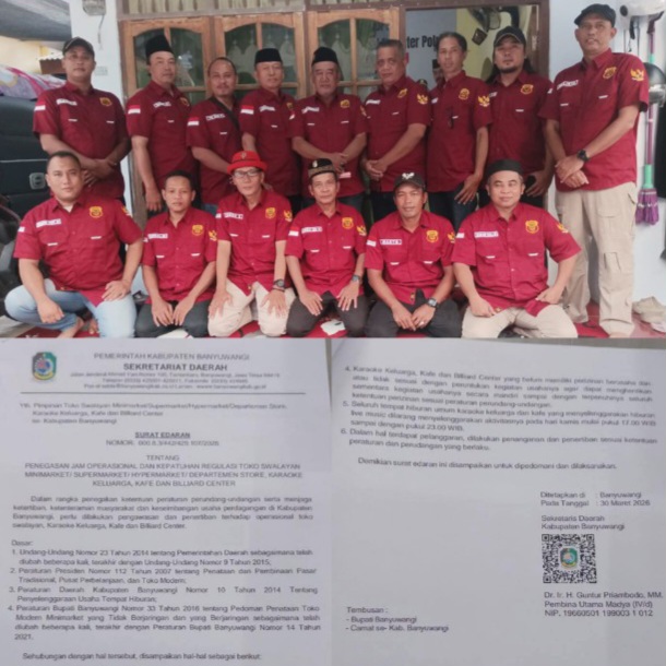 Banyuwangi, Metrozone.net- Terbitnya Surat Edaran (SE) Pemerintah Kabupaten Banyuwangi Nomor: 00.8.3/442/429.107/2026 tertanggal 31 Maret 2026 tentang penegasan jam operasional usaha mendapat sorotan keras dari PW Fast Respon Nusantara DPC Banyuwangi.(2/4/2026)