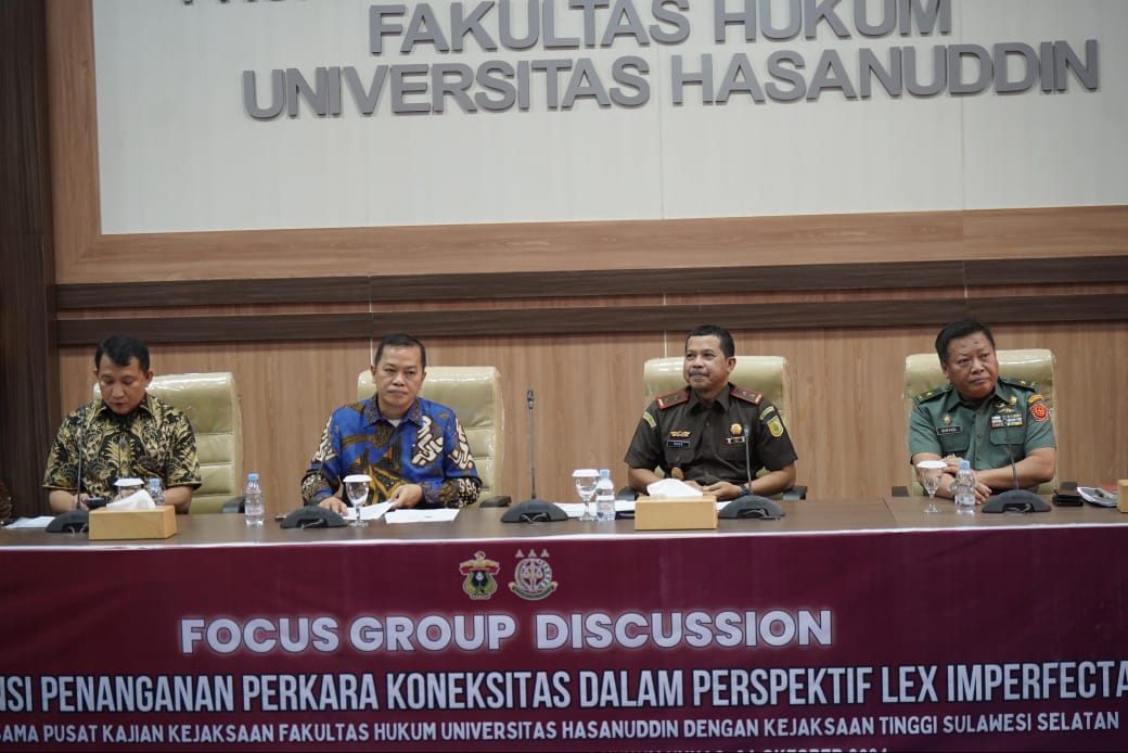 Kegiatan ini dilaksanakan Bidang Pidana Militer Kejati Sulsel bekerja sama dengan Pusat Kajian Kejaksaan Fakultas Hukum Universitas Hasanuddin di Kampus Unhas, Kota Makassar, Kamis (24/10/2024).