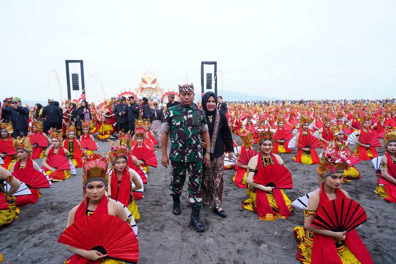 Banyuwangi, Metrozone.net- Gemerincing gamelan, gerak anggun ribuan penari Gandrung, dan semangat masyarakat Banyuwangi mewarnai Festival Gandrung Sewu 2025 yang digelar megah di Pantai Boom Marina. Hadir dalam kesempatan tersebut, Danrem 083/Baladhika Jaya Kolonel Inf Kohir bersama Ny. Nilam Kohir, Ketua Persit Kartika Chandra Kirana Koorcab Rem 083 PD V/Brawijaya, Sabtu 25/10/2025.