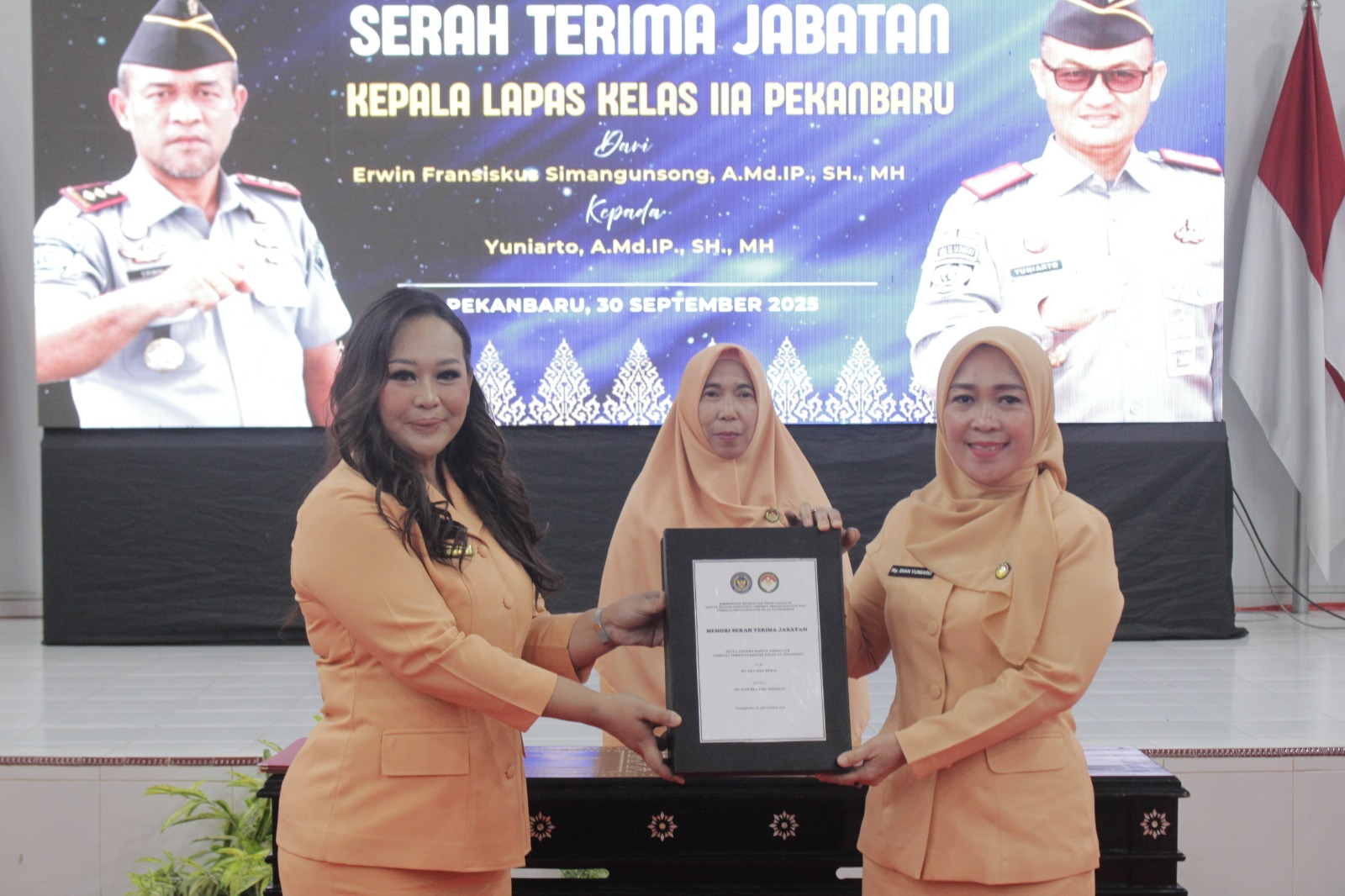 Suasana khidmat dan haru menyelimuti acara serah terima jabatan serta pisah sambut Kepala Lembaga Pemasyarakatan (Kalapas) Kelas IIA Pekanbaru yang digelar di Aula Sahardjo Lapas Pekanbaru, Selasa (30/09/2025).