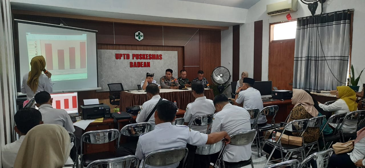 Kepala Puskesmas Badean, Ibu Indah Swartiningtyas, S.ST., M.M.Kes., memimpin acara inti dengan memaparkan capaian program kesehatan yang telah berjalan serta tantangan yang dihadapi di lapangan. Paparan tersebut mencakup evaluasi program triwulan sebelumnya dan rencana strategis ke depan, termasuk upaya pencegahan penyakit dan penurunan angka stunting.