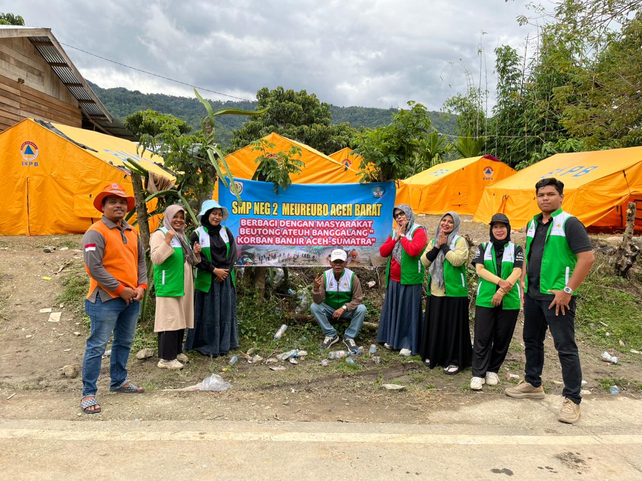 Meulaboh (METROZONE.net) – Sekolah Menengah Pertama (SMP) Negeri 2 Meureubo, Kabupaten Aceh Barat, menyalurkan bantuan kepada korban banjir bandang di Kecamatan Beutong Ateuh Banggalang, Kabupaten Nagan Raya. Penyaluran bantuan ini diantar langsung oleh Kepala SMPN 2 Meureubo, Ibnu Abas, bersama sejumlah dewan guru ke lokasi bencana pada Rabu (17/12-2025).
