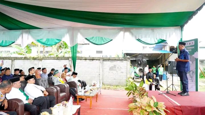 Stabat, Metrozone.net- Bupati Langkat, H. Syah Afandin, SH menegaskan komitmennya untuk mendorong hadirnya balai ternak hingga ke tingkat kecamatan sebagai upaya membangkitkan perekonomian masyarakat. Hal itu ia sampaikan saat launching Balai Ternak Sri Langkat Berkah Mulia, yang digelar bersama Ketua Baznas RI Prof. DR. K.H. Noor Achmad, MA dan Ketua Baznas Sumut Prof. Dr. H. Mohammad Hatta di Sekolah YPP Prof. Dr. H. Mohd Hatta, Kecamatan Stabat, Jumat (12/9/2025).