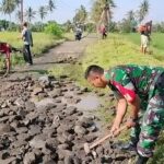 Songgon, Metrozone.net– Menunjukkan semangat kebersamaan dan kepedulian terhadap infrastruktur desa, Babinsa Desa