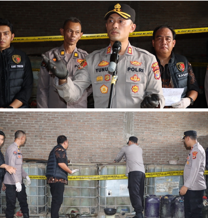 “Totalnya sekitar 5.665 liter. Petugas juga mengamankan sebuah mobil dan satu unit mesin sedot yang digunakan untuk menyedot dan mengoplos BBM,” ujar Kapolres saat menggelar ekspose di lokasi penggerebekan, Jumat (10/4/2026).