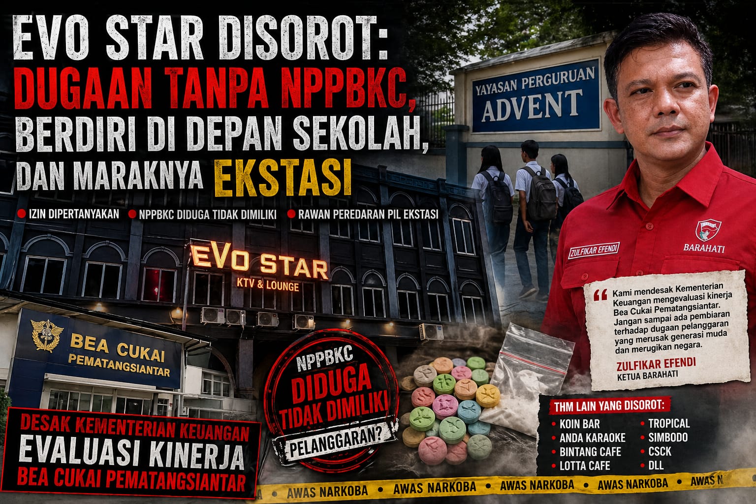 Lebih lanjut, BARAHATI secara tegas mendesak Kementerian Keuangan untuk mengevaluasi kinerja Bea Cukai Pematangsiantar. Mereka menilai, jika benar ada THM yang beroperasi tanpa kelengkapan NPPBKC atau tidak sesuai ketentuan, maka hal tersebut menunjukkan lemahnya fungsi pengawasan. Kondisi ini dinilai berpotensi memperparah peredaran barang ilegal, termasuk minuman tanpa cukai dan narkotika.