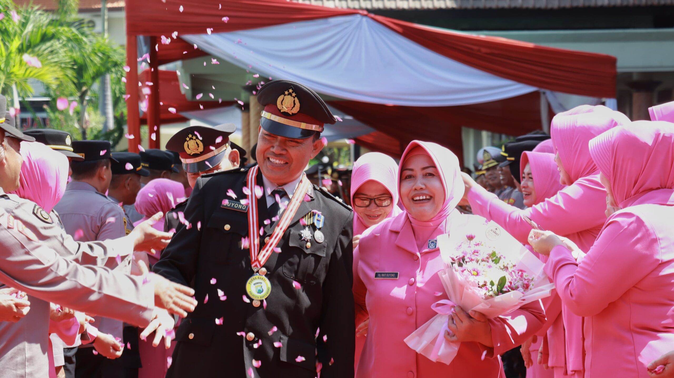 Kegiatan upacara wisuda purnabakti 6 anggota dan ASN Polresta Banyuwangi yang telah memasuki masa pensiun digelar di Lapangan Apel Polresta Banyuwangi. Tradisi yang dihadiri oleh Kapolresta Banyuwangi, Pejabat Utama, Kapolsek Jajaran Polresta, serta ibu Bhayangkari Polresta Banyuwangi itu digelar dengan sangat khidmat.