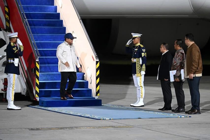 Setibanya di Pangkalan TNI Angkatan Udara Halim Perdanakusuma, Jakarta, Presiden Prabowo disambut oleh Wakil Ketua DPR Sufmi Dasco Ahmad, Menteri Sekretaris Negara Prasetyo Hadi, serta Kepala Badan Komunikasi Pemerintah Angga Raka Prabowo.