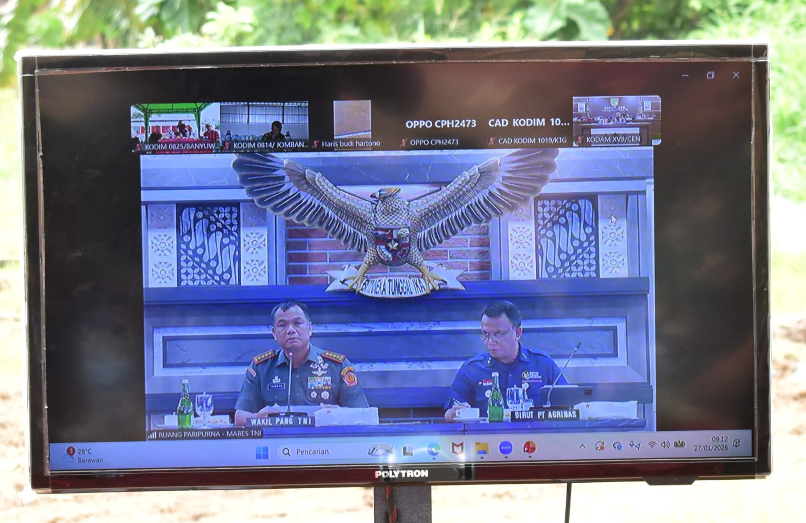 Banyuwangi, Metrozone.net- Pengawasan dan Evaluasi (Wasev) Koperasi Desa/Kelurahan Merah Putih (KDKMP) dilaksanakan secara virtual dan dipimpin oleh Wakil Panglima TNI Jenderal TNI Tandyo Budi Revita di Markas Besar TNI, didampingi Wakil Direktur Utama PT Agrinas Pangan Nusantara, Selasa (27/01/2026).