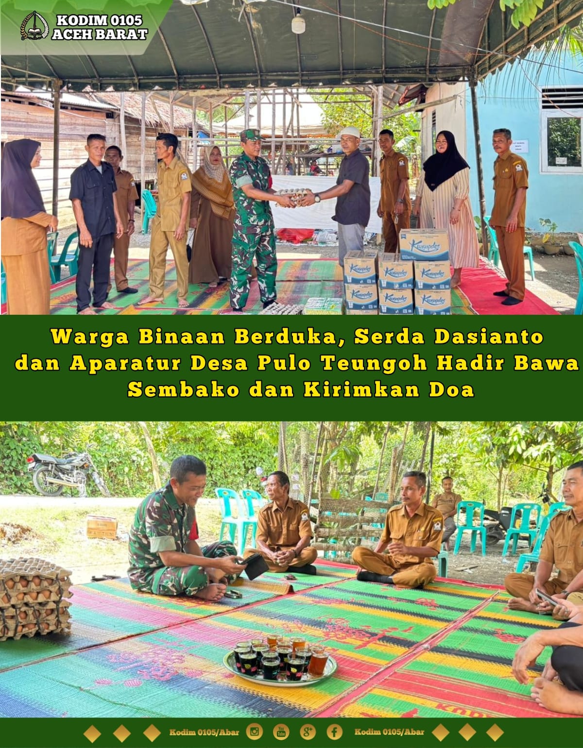 “Aksi sosial ini bertujuan untuk meringankan beban keluarga yang tengah berduka. Babinsa bersama para aparatur desa hadir langsung memberikan dukungan moril berupa bantuan paket Sembako,” ujar Danramil