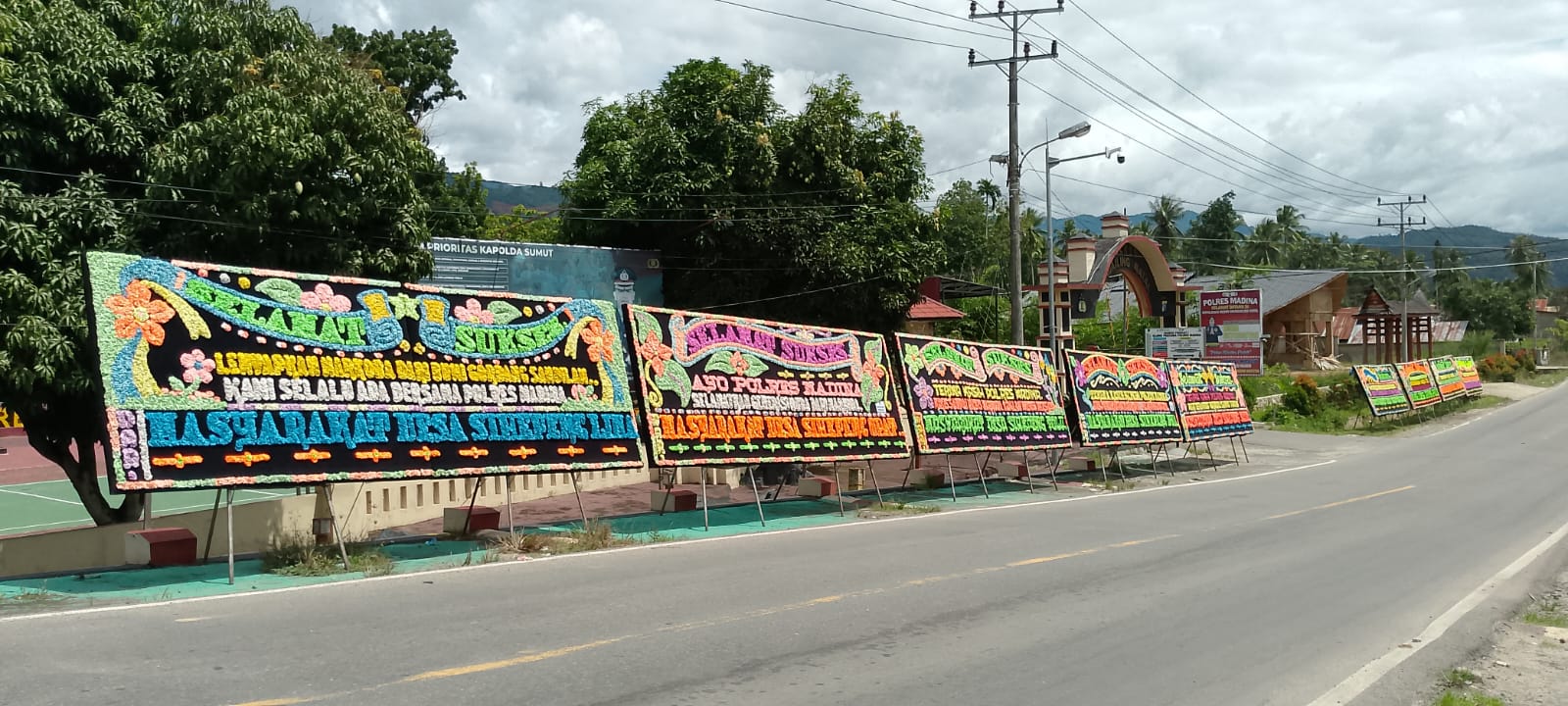 Sebagai bentuk ungkapan rasa syukur dan dukungan, warga Kecamatan Siabu mengirimkan sejumlah papan bunga ucapan terima kasih yang berbaris rapi di depan Kantor Polres Mandailing Natal. Papan bunga tersebut berisi pesan-pesan apresiasi atas kinerja tegas dan profesional aparat kepolisian dalam memberantas peredaran gelap narkotika yang dinilai telah merusak generasi muda dan mengganggu ketenteraman masyarakat.